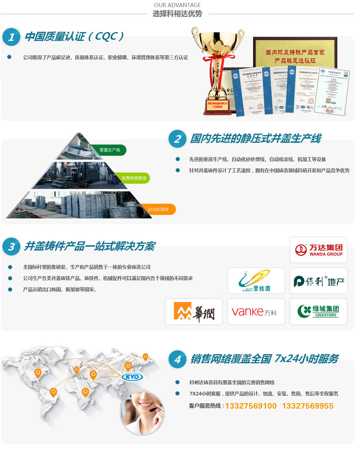 晉城市科裕達(dá)鑄造有限公司,位于山西省晉城市南村鎮(zhèn)智能綠色鑄造創(chuàng)新產(chǎn)業(yè)園區(qū),成立于2014年2月,注冊資金2億元整,產(chǎn)量10萬噸。經(jīng)過這些來的發(fā)展,已經(jīng)成為全國集研發(fā)、生產(chǎn)、銷售各類球墨鑄鐵井蓋、箅子產(chǎn)品于一體的專業(yè)鑄造公司,是已知國內(nèi)較大的球墨鑄鐵井蓋生產(chǎn)基地。2016年10月,公司順利通過了二級安全生產(chǎn)標(biāo)準(zhǔn)化的評審,正式成為一家二級安全生產(chǎn)標(biāo)準(zhǔn)化企業(yè)。2017年3月,山西省安全生產(chǎn)監(jiān)督管理局授予公司2016年冶金工貿(mào)行業(yè)“安全生產(chǎn)先進(jìn)單位”稱號。2017年11月被山西省中小企業(yè)局授予“專精特新”中小企業(yè)榮譽。2020年8月被認(rèn)定為國家高新技術(shù)企業(yè)。2021年5月被中國鑄造協(xié)會認(rèn)定為“單項冠軍企業(yè)”。2021年9月被山西省中小企業(yè)局授予“專精特新小巨人”企業(yè)榮譽。2022年被中國鑄造協(xié)會認(rèn)定為第四屆鑄造行業(yè)排頭兵企業(yè)。2023年7月被工信部認(rèn)定為“國家級專精特新小巨人”企業(yè)榮譽。2024年被省工信廳認(rèn)定有“省級綠色工廠”及“省級企業(yè)技術(shù)中心”。